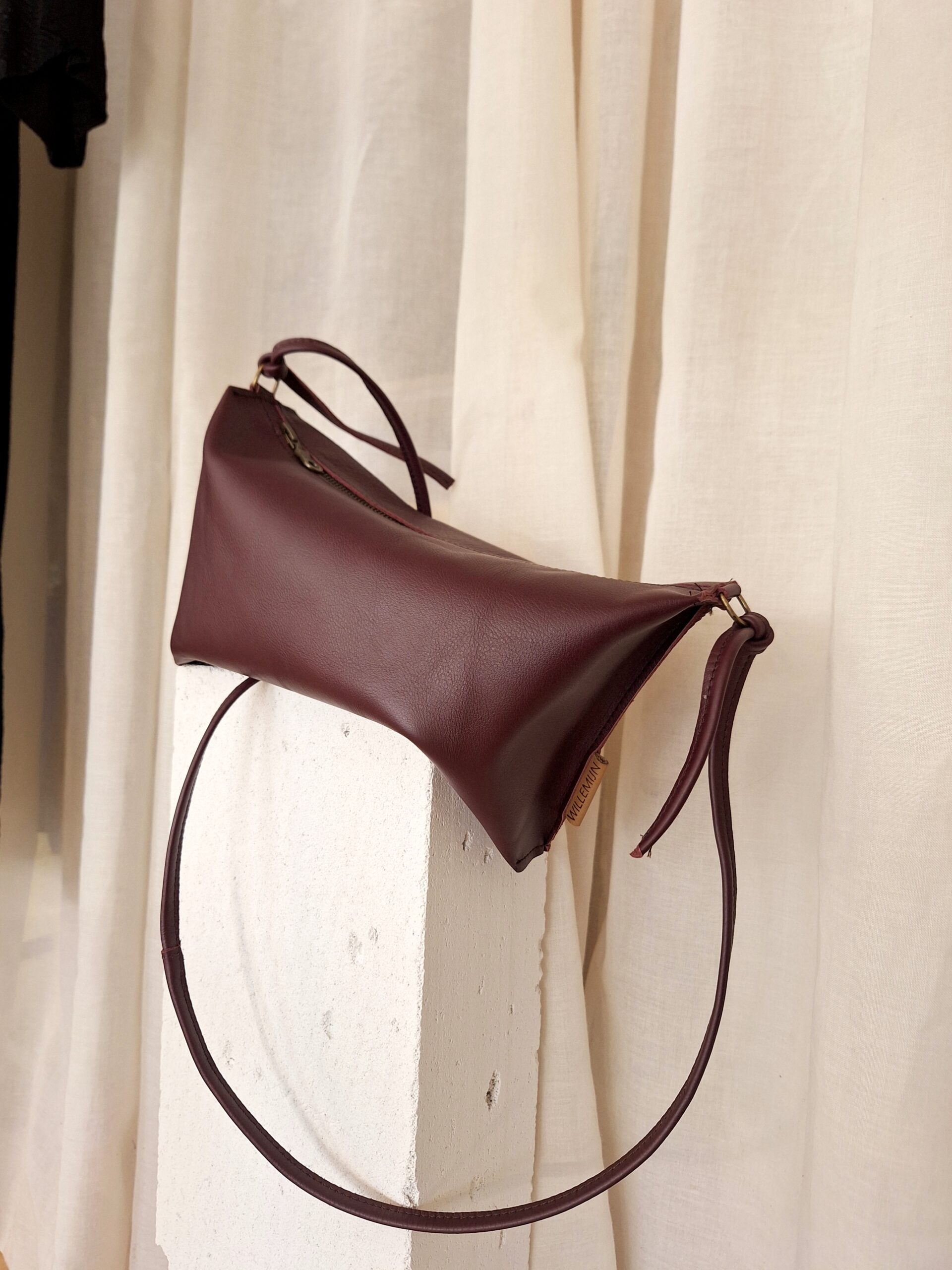 Schoudertas van leer. De hengsels zijn in lengte verstelbaar.
